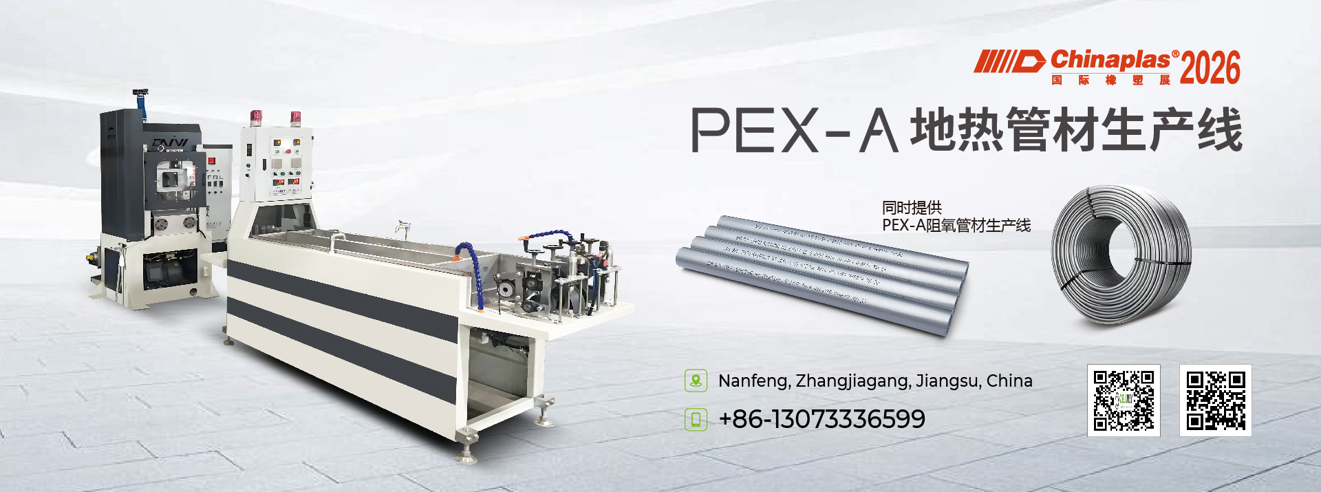 可生产PEX/PE/PVC/PPR等各类塑料管材,生产线运行稳定、产量高、能耗低,温控精准,成品管材尺寸精度高、性能优异,适配给排水、市政、家装等多场景管材生产需求。