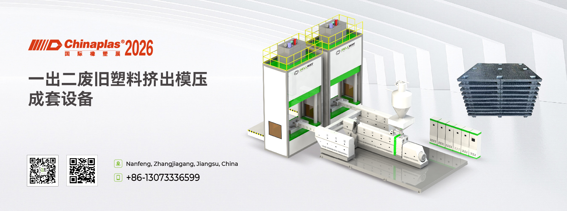 适用于PP/PE等废旧塑料回收造粒后,全自动生产塑料托盘。生产线自动化程度高,省人工、运维成本低,成品托盘强度高、性能稳定,可实现废旧塑料高值化循环利用。