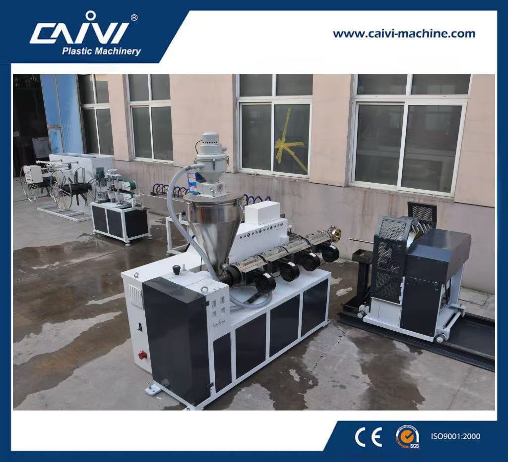 原料+助剂配制 → 混合 → 造粒 → 输送上料 → 单螺杆挤出机 → 钢丝成型装置 → 挤出模具 → 喷雾冷却水箱 → 履带牵引机 → 收卷机 → 成品检测包装