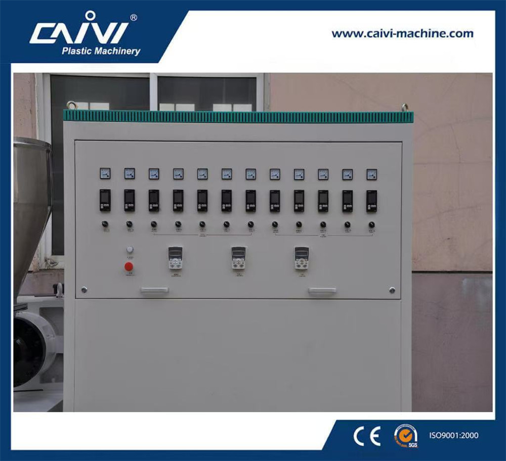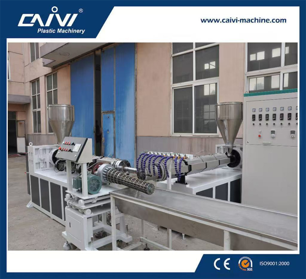 2.此设备包括两个挤出机,成型机,冷水槽和收卷机。