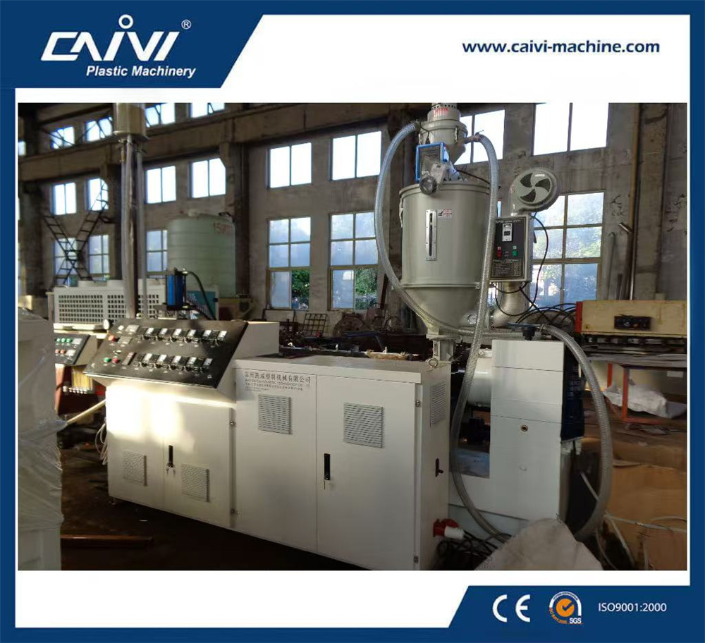 原材料→真空上料→材料干燥→单螺杆挤出机→螺旋式模具→低温冷却定径套,高位水箱→水冷机→浸泡真空定型箱→浸入泡冷却水箱→浸泡冷却水箱→ 喷码机→皮带牵引机→双工位收卷机→成品检测包装